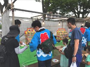 平成29年7月22日、南万騎が原駅北側にある柏町北公園にて、南まきが原自治会主催の夏祭りが開催され、県立横浜緑園高等学校(柏木 信一郎 校長)の生徒が17名参加しました。昨年に引き続き2回目の参加となります。今年度は、運営だけでなく設営から参加し、射的・人形すくい・輪投げ・くじ引き等の縁日の手伝いを通して、地域の子ども達をはじめ、幅広い世代の方々と交流を深めました。